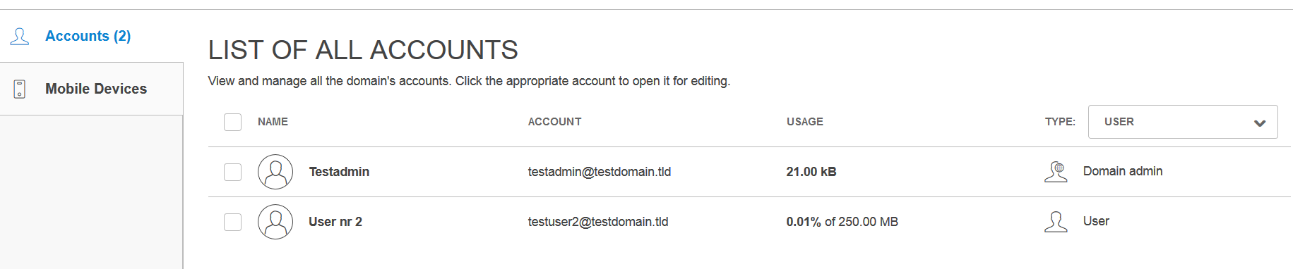 - Vælg det domæne som hører under den e-mail du vil ændre.