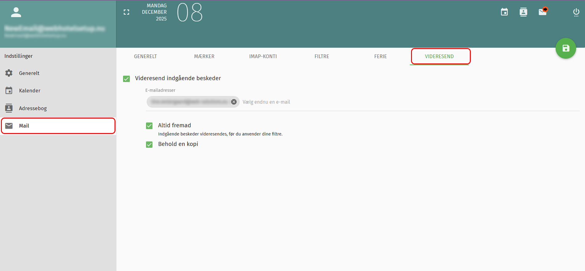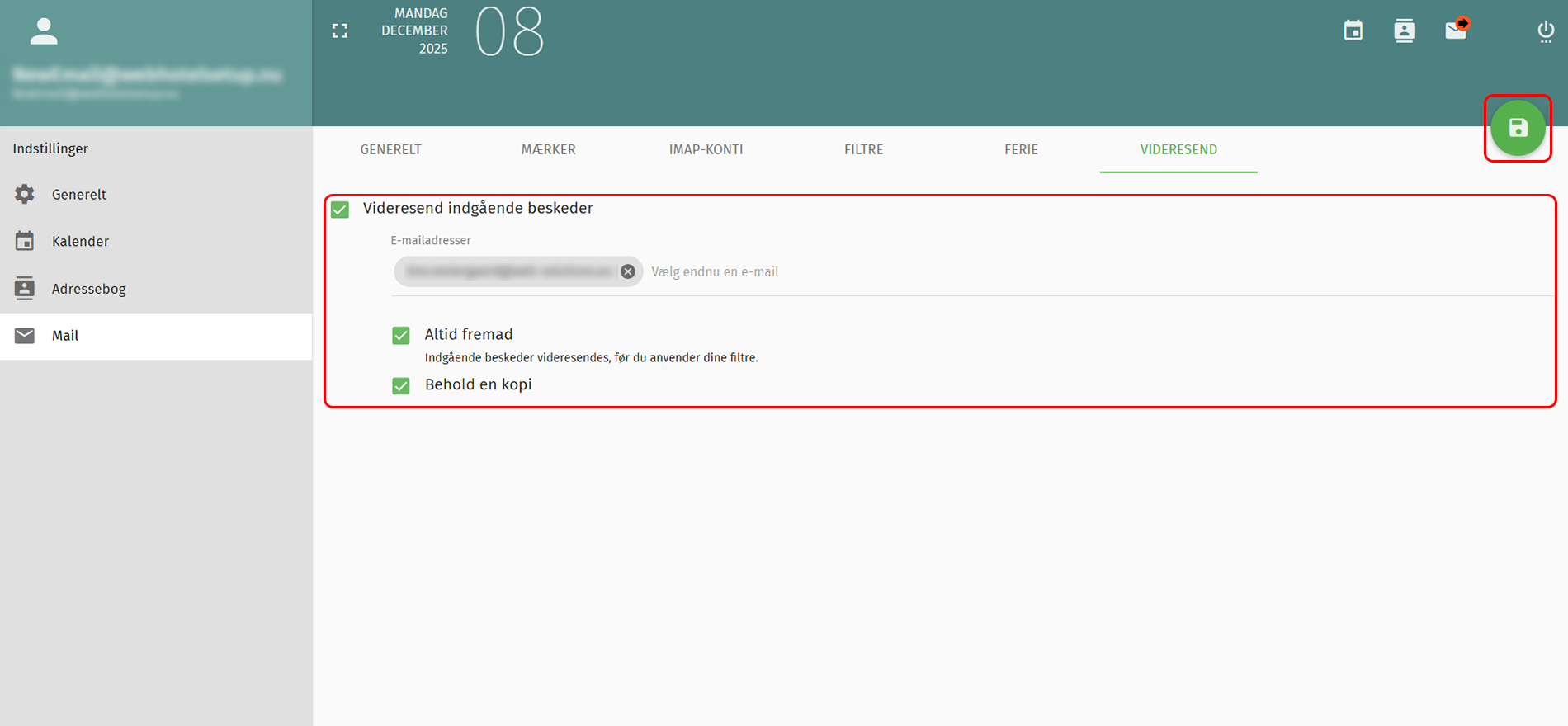 5. Indsæt din e-mailadresse, som dine mails skal videresendes til.