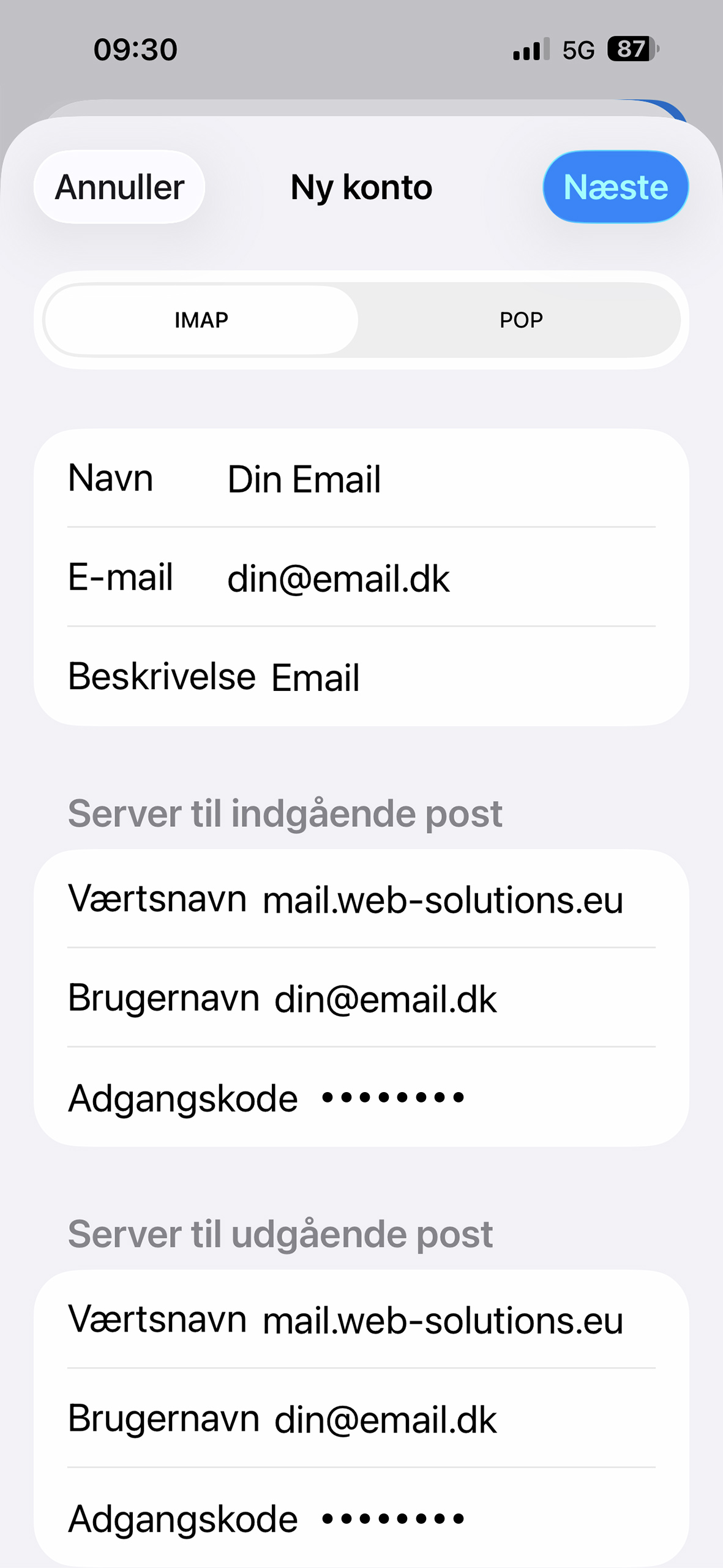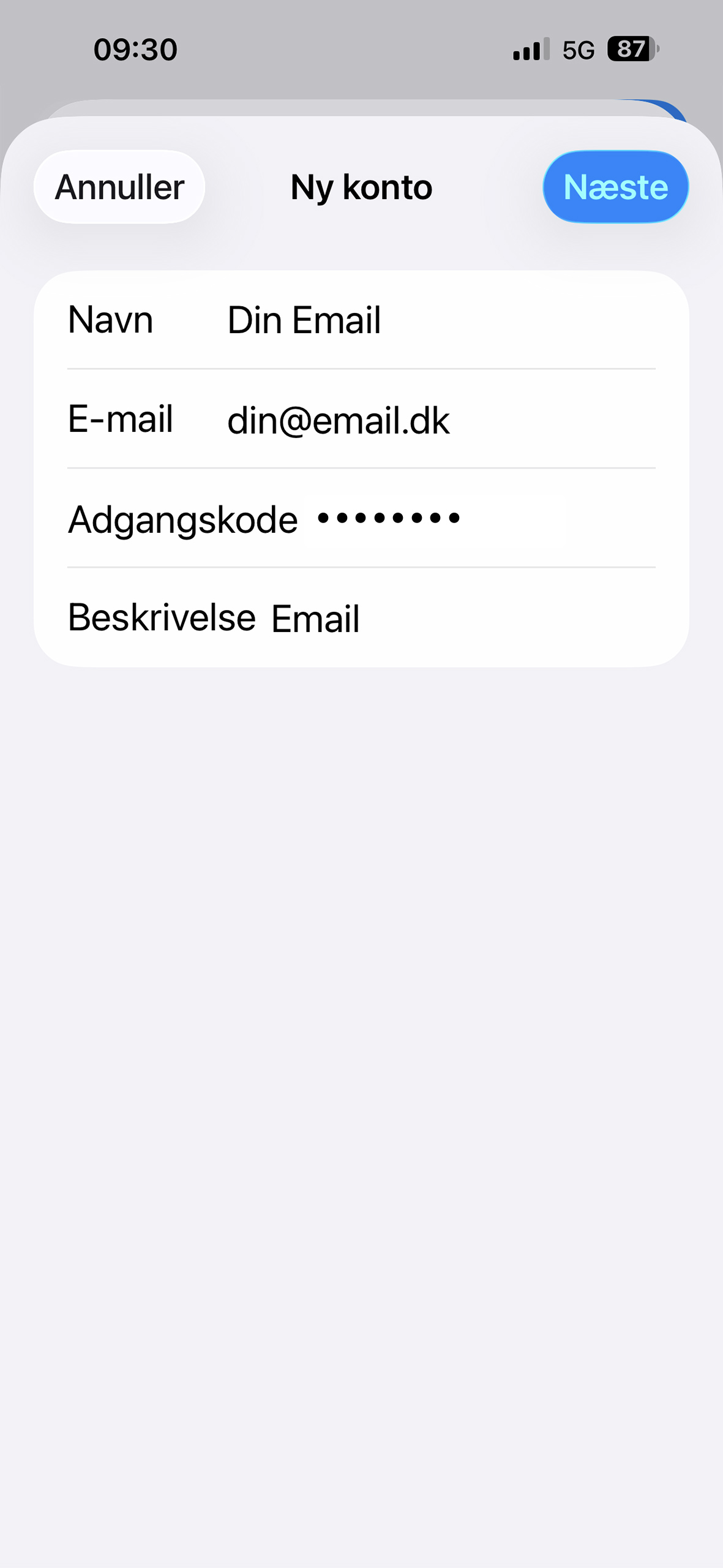 7. Indtast navn, e-mail, adgangskode og beskrivelse.