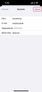10. Indtast oplysningerne for “Server til indgående post” og “Server til udgående post”.