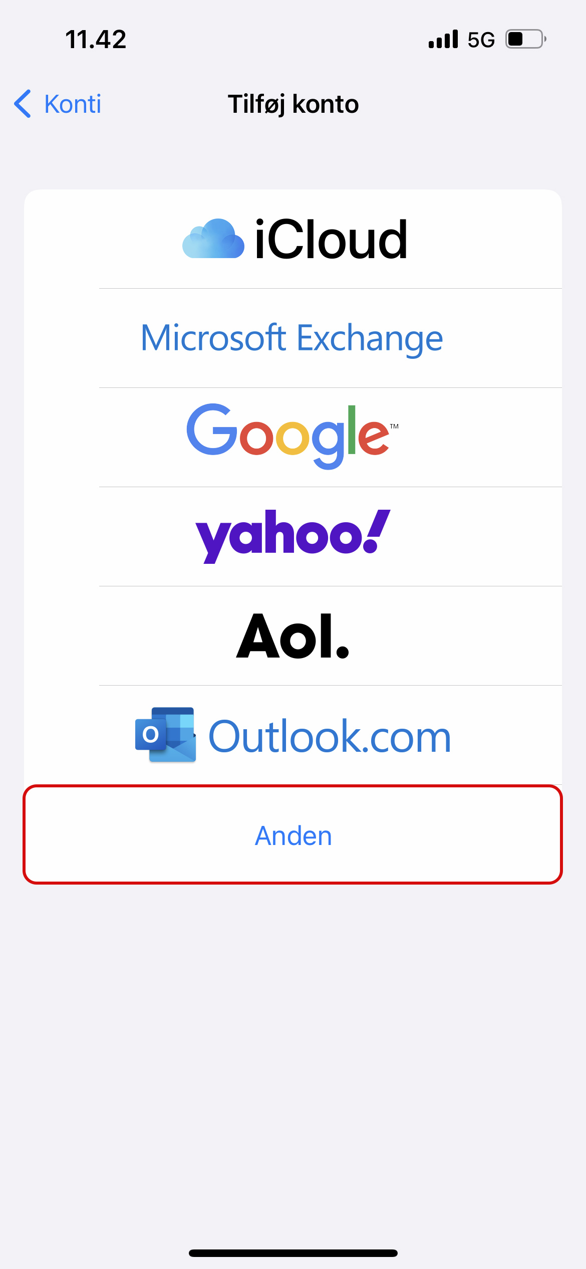 5. Tryk på Anden.