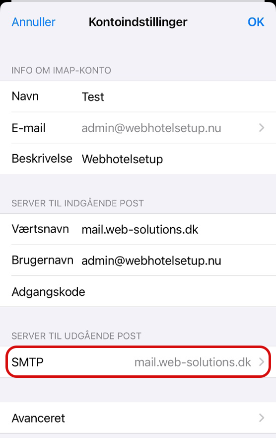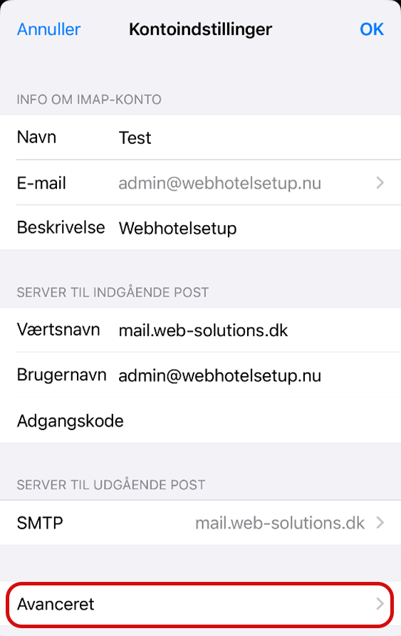 Din mailboks er nu sat op og klar til brug på din iPhone.